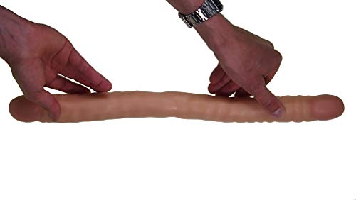 Specification: Doctor Dildo – model 07 – “De grote tweeling” – flexibele dubbele dildo van hygiënisch TPE met een diameter van 4-4,5 cm en een lengte van 46,5 cm, huidskleur