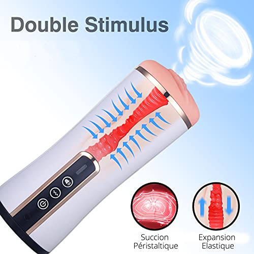 Stimilous masturbator voor mannen die vibratie en peristaltische zuigkracht combineert. Hoogwaardige medische siliconen vagina-vormige kop – 10 vibratiestanden – Draadloze elektrische stimulator – oplaadbaar via meegeleverde USB-kabel – Stil en discreet – Kreunende stemmen, oordopjes meegeleverd – Waterdicht, waterdicht en wasbaar ontwerp.