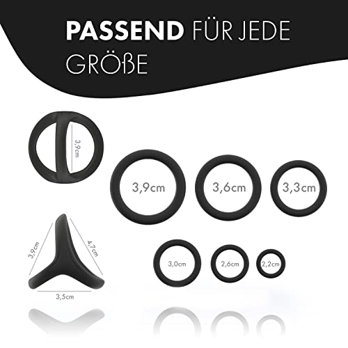 Levosa® Set van 7 penisringen, 6 penisringen en 1 dubbele ring voor een hardere en langere erectie, geschikt als penis- en testikelringen, cockring geschikt voor elke maat
