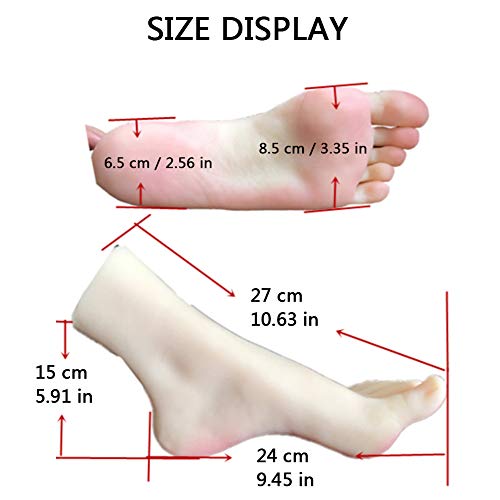 ★ [Levensgrote siliconen paspopvoet]: De lengte van deze siliconen voet is 24 cm / 9,45 inch en de hoogte is 15 cm / 5,91 inch (Europese maat: 38 / Engelse maat: 6 / Amerikaanse maat: 8). Deze siliconenvoet heeft een bepaalde hardheid van binnen, die geschikt is voor het showeffect van schoenen, schetsen en fotografie.