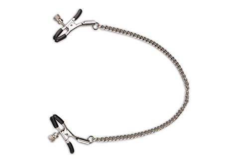 Verstelbare tepelklemmen verbonden door een 35 cm lange ketting van metaal. Rubberen punten zorgen voor een hoog draagcomfort en een schroef zorgt voor de perfecte knip.