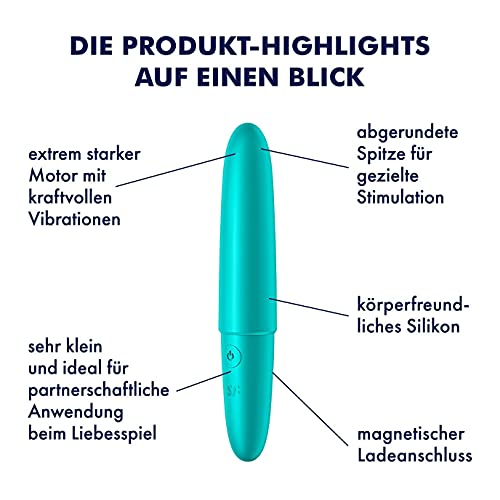 Specification: Satisfyer, minivibrator, ‘Ultra Power Bullet 6’, 13 cm, waterdicht, medische siliconen, oplaadbaar, kleur:turkoois